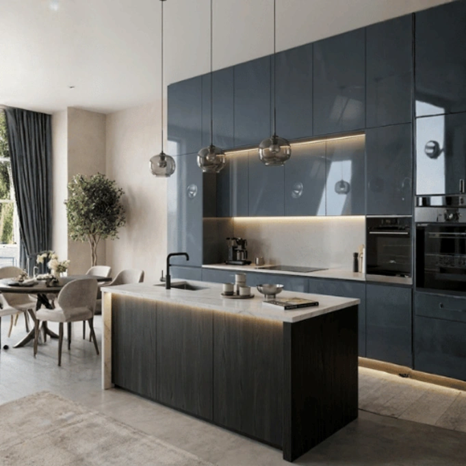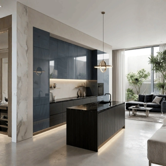 Manufactured with premium PET and melamine lamination, the board provides excellent resistance to scratches, stains, and moisture. Its glossy surface is easy to clean, making it highly practical for kitchens, wardrobes, and high-traffic furniture applications.