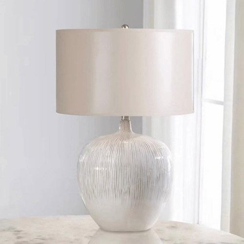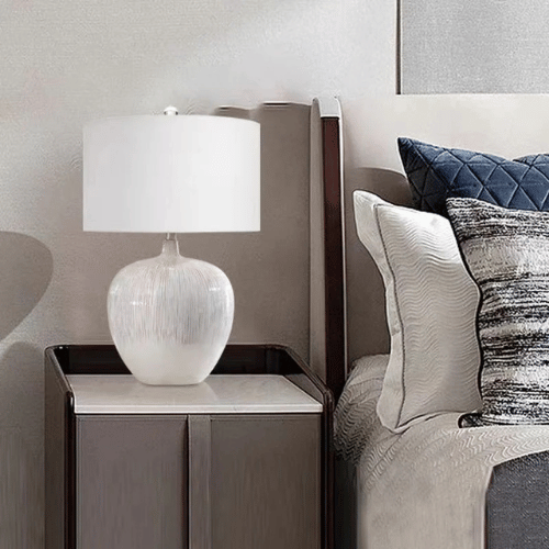 Crafted from a durable combination of ceramic, metal, and fabric, the lamp offers long-lasting strength and everyday reliability. The round ceramic lamp body features a smooth, refined finish that adds subtle texture and visual depth without overwhelming the space. Modern Nordic Round Ceramic Table Lamp Paired with a soft fabric lampshade, the gently curved edge design diffuses light evenly, creating a warm, comfortable, and glare-free lighting atmosphere.