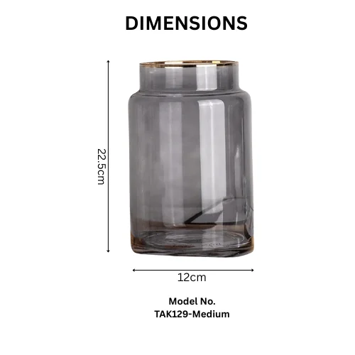 Add refined charm to your space with the elegant ORIN Blue Grey Table Vase. Crafted from premium quality glass, this vase features a sophisticated blue-grey tint accented with a delicate gold rim, creating a luxurious contrast that instantly elevates any floral arrangement. Its timeless cylindrical silhouette allows the natural beauty of flowers to take center stage while enhancing your décor with subtle glamour.