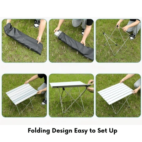 The foldable design allows the table to be quickly set up and packed away within seconds. When folded, it becomes compact and space-saving, making it easy to store in your car trunk, camping gear bag, or storage area. Premium Aluminum Folding Camping Table The smooth aluminum tabletop is also easy to clean and maintain, ensuring hassle-free outdoor use.