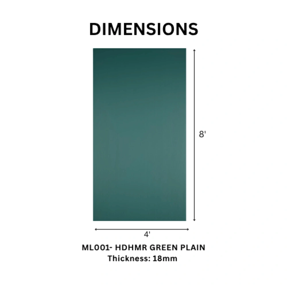 With its stable structure, this board resists warping, cracking, and termite damage, ensuring reliable performance over time.TAITA Premium Green Plain HDHMR Board The precision-cut 8×4 ft size allows for efficient installation and minimal material wastage. Whether used for modular furniture, wardrobes, shelving, or partitions, this HDHMR board delivers both functionality and value.