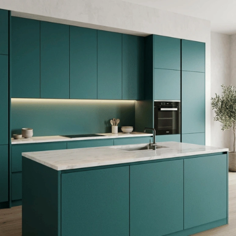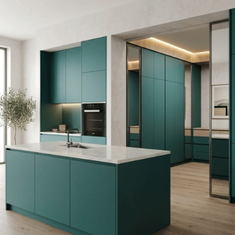 Its moisture-resistant core makes it especially suitable for humid environments such as kitchens, bathrooms, and utility areas. The smooth, uniform green surface ensures easy lamination, painting, or veneering, giving designers and carpenters complete flexibility in finishing.