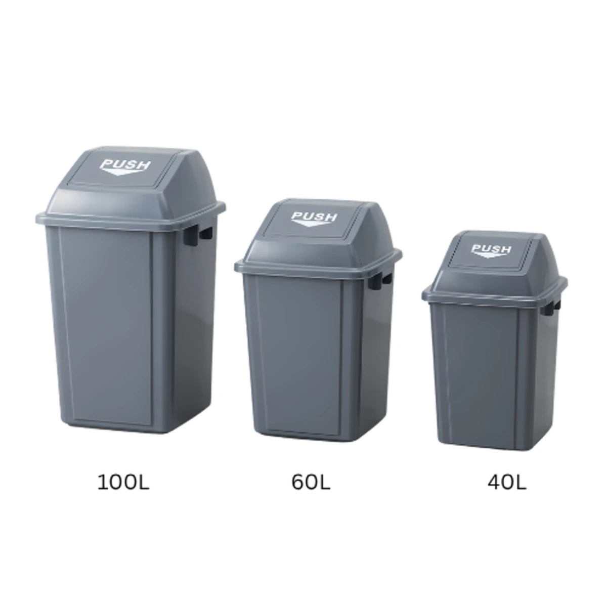 Available in multiple capacities (40L, 60L, and 100L), the Quadrate Waste Bin caters to different usage needs—from compact spaces to high-traffic areas. The bin is also equipped with convenient side handles for easy handling and transportation when needed.