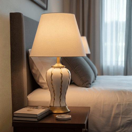 Bring refined elegance and artistic character into your interior with the Modern Royal Golden Ribbed Ceramic Table Lamp, a sophisticated lighting piece designed to enhance both ambiance and décor. With its sculptural silhouette and luxurious detailing, this lamp serves as a striking accent on bedside tables, study desks, sideboards, or living room consoles.
