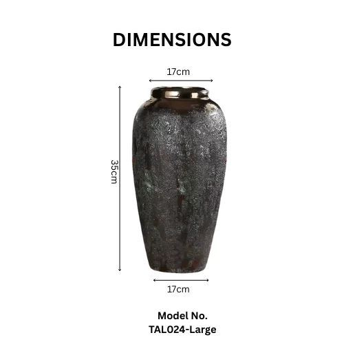 Infuse your space with bold character and timeless artistry with the Shadow Stone Table Vase 3pc Set. Designed with a retro, handcrafted aesthetic, this trio features an antique coarse clay pot style finished in a dramatic Shadow Stone patina. The look is inspired by aged stone and weathered metal, making it a perfect statement for modern, industrial, rustic, and luxury interiors.