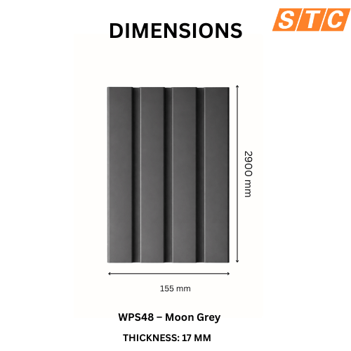 The STC Innovative WPC Square Fluted Wall Panel Moon Grey WPS48 is a smart, stylish, and practical choice for those seeking the beauty with the added benefits of durability, easy maintenance, and affordability.