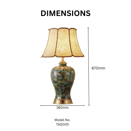 The high-quality fabric lampshade, finished with neatly hemmed upper and lower edges, provides excellent light transmittance while softening the glow. This creates a warm, layered lighting effect that enhances comfort and ambiance without glare. Easy to clean and maintain, the shade complements the ceramic body with its tasteful green and blue tones. including push-button compatibility, make operation effortless and convenient.