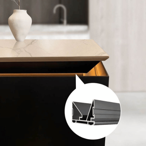 Create a sleek, modern lighting finish for furniture and cabinetry with the 3m Table Top Aluminum LED Profile System, a versatile solution designed for contemporary interiors. Crafted from high-quality aluminum alloy with a refined matte black finish, this profile system combines durability, protection, and architectural-grade lighting performance.