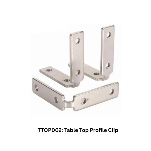 - TTOP002: Table Top Profile Clip These are the L-shaped angle brackets used as fasteners to join sections of the aluminum profile or attach the tabletop to its base.