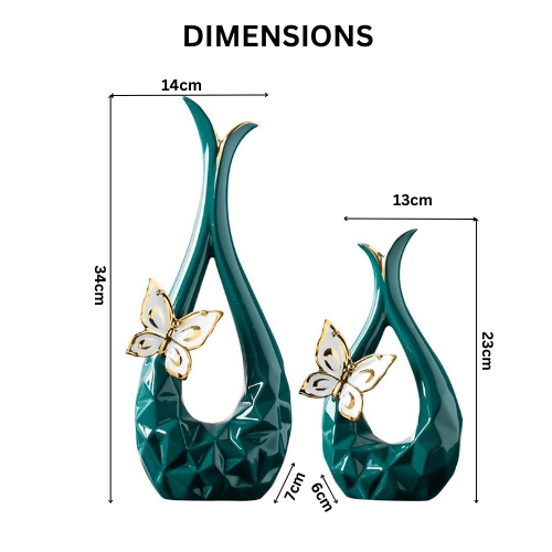 - Product Name: Unique Teardrop Ceramic Butterfly Vase Set Green