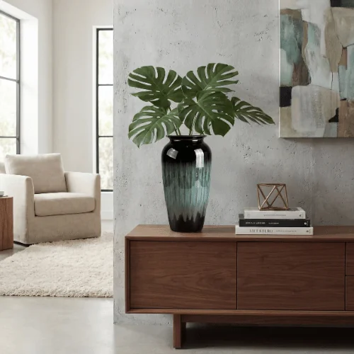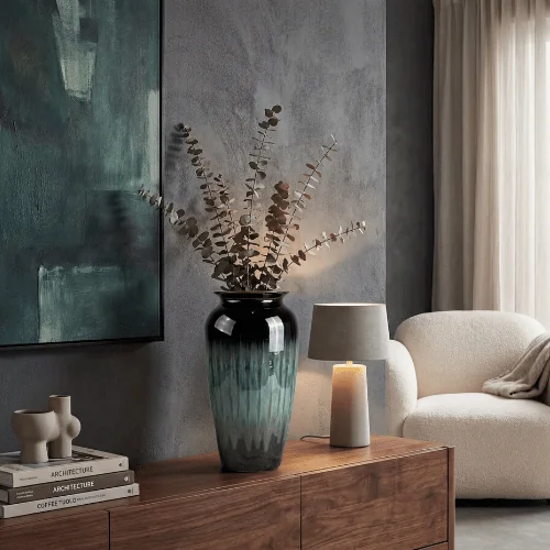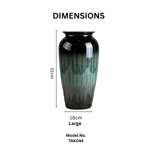 Bring a touch of modern artistry into your space with the VELISSE Emerald Fade Table Vase. This premium ceramic vase features a tall, elegant pot-style silhouette with a narrow neck and a smooth, glossy finish, complemented by high-fired craftsmanship for durability and longevity.