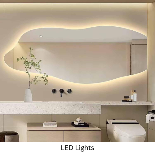 Modern Floating Wall Mount Horizontal Mirror with LED Light this mirror’s asymmetrical and modern design allows versatile installation. Pre-installed hooks and included hardware ensure quick, secure mounting on any wall. Whether used as a functional dressing mirror, a decorative wall piece, or an LED-lit accent, it adds undeniable charm and artistic flair to your home.