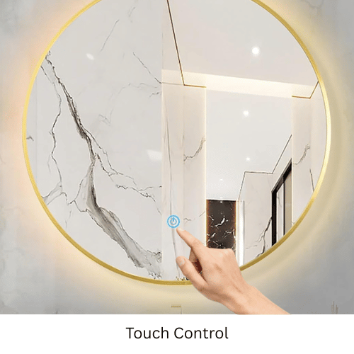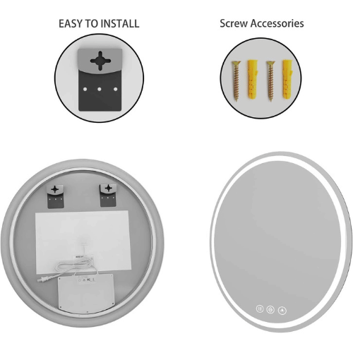 Luxury Wall Mount Round Mirror with LED Light The mirror supports plug-in use for easy power access or professional hardwiring for a seamless, cordless appearance. Just 1 button to control the led mirror. This lighted bathroom mirror is multifunctional. Very simple operation that just touch the sensor and easily turn on/off.
