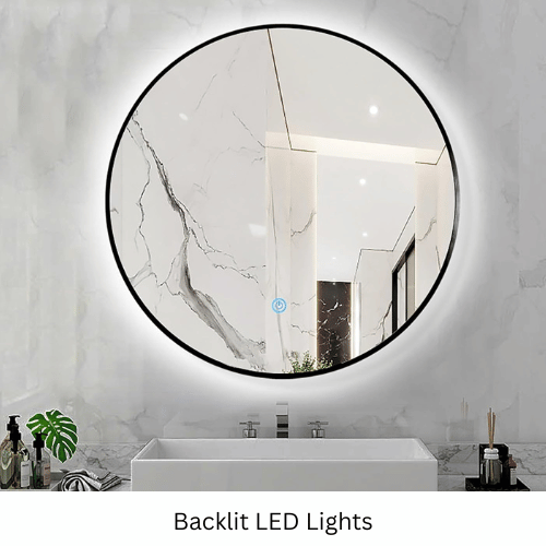 Equipped with dual lighting technology, the mirror features both a bright backlit glow and a built-in LED strip around the frame. This provides powerful, uniform illumination with no shadows—perfect for detailed makeup application, shaving, skincare, and daily grooming. The high-brightness LED system ensures a clear soft light that reduces glare and enhances overall visibility.