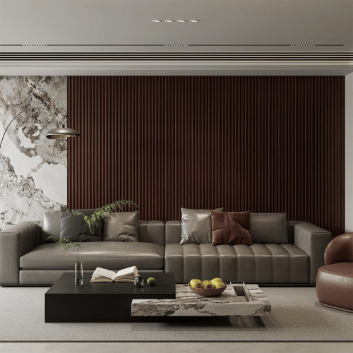 - Type: WPC Square Fluted Panel Mahogany Finish