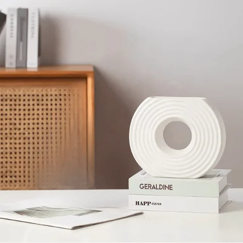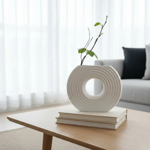 The White Half Circle Table Vase is more than a container—it’s a decorative art piece that brings balance, texture, and sophistication into your home.