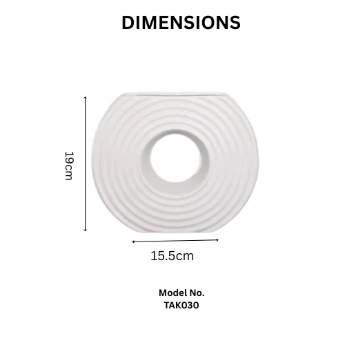 Bring sculptural elegance into your space with the White Half Circle Table Vase. Designed with a modern circular silhouette and hollow center, this vase transforms simplicity into a striking décor statement. Its slim profile and artistic half-ring form make it a perfect blend of contemporary style and timeless charm.