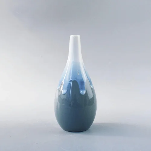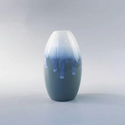 Elevate your home décor with the ZAYRO Glacier Table Vase, a set of three ceramic vases featuring a stunning blue-to-white gradient glaze. Each vase is sold individually, allowing you to mix and match shapes and sizes for a truly personalized display.